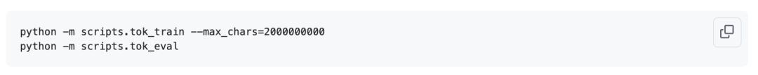 After the download is complete, we begin training the tokenizer—the tokenizer responsible for converting between strings and a codebook of symbols. By default, the training vocabulary size is 2¹⁶ = 65,536 tokens (a good number), with some tokens reserved as special tokens for later chat mode use. The training set contains 2B characters, and training takes only about a minute.