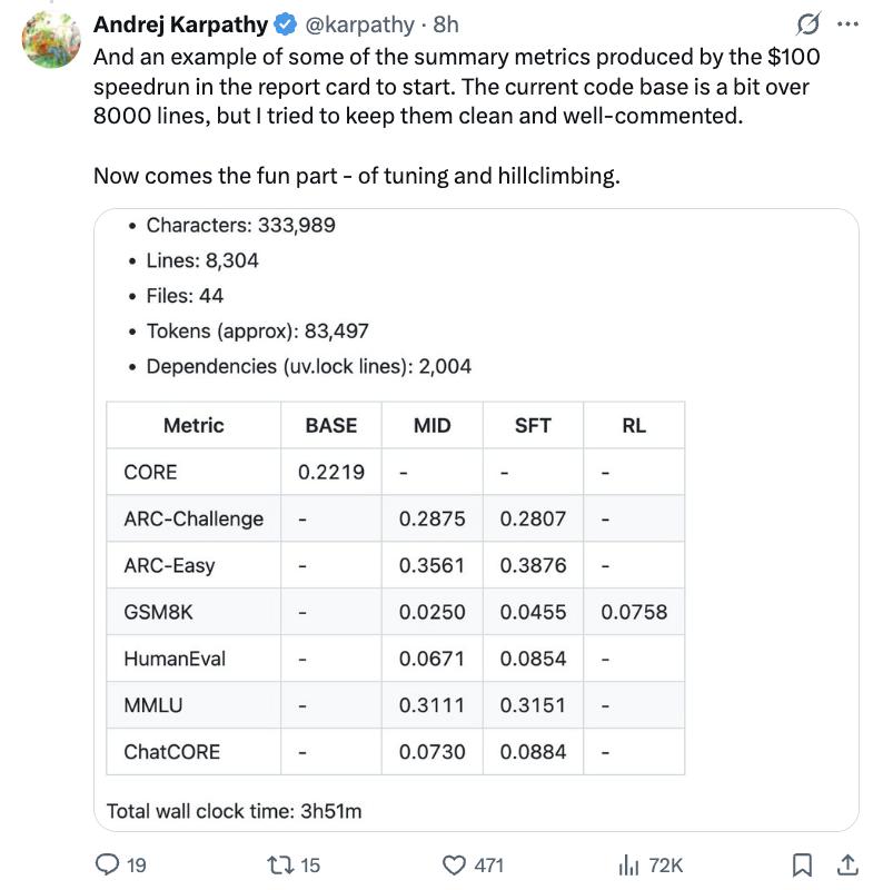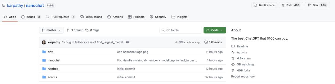 GitHub repo: https://github.com/karpathy/nanochat