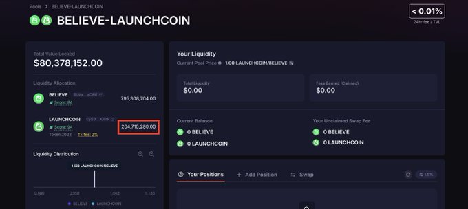It appears they are using Meteora for a LAUNCHCOIN-BELIEVE 1:1 swap bin.