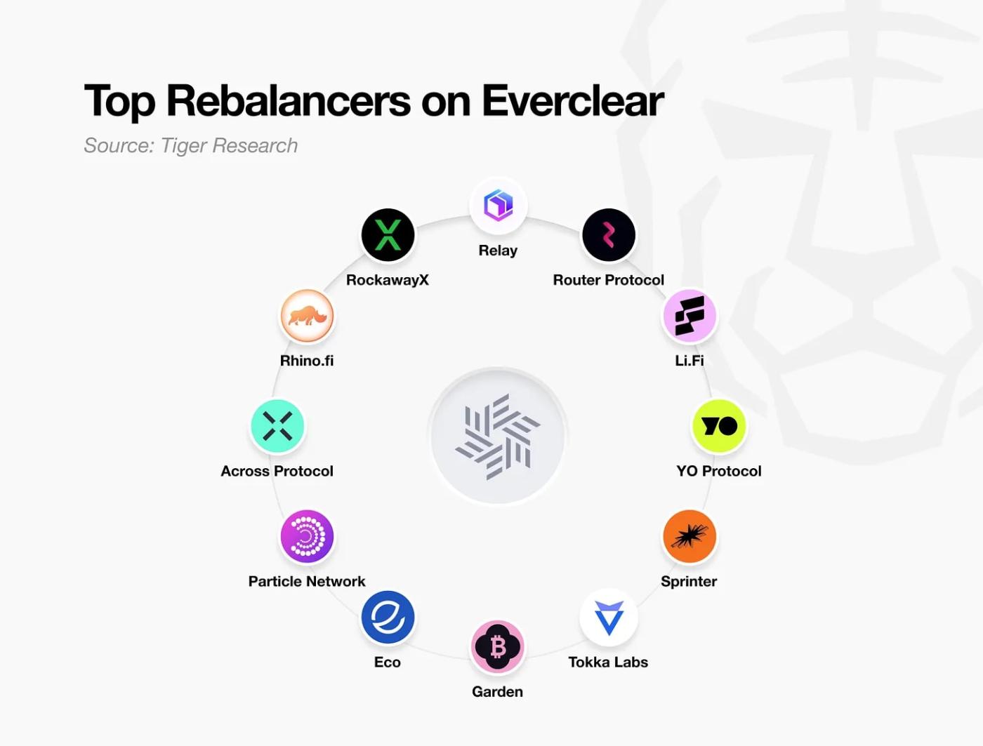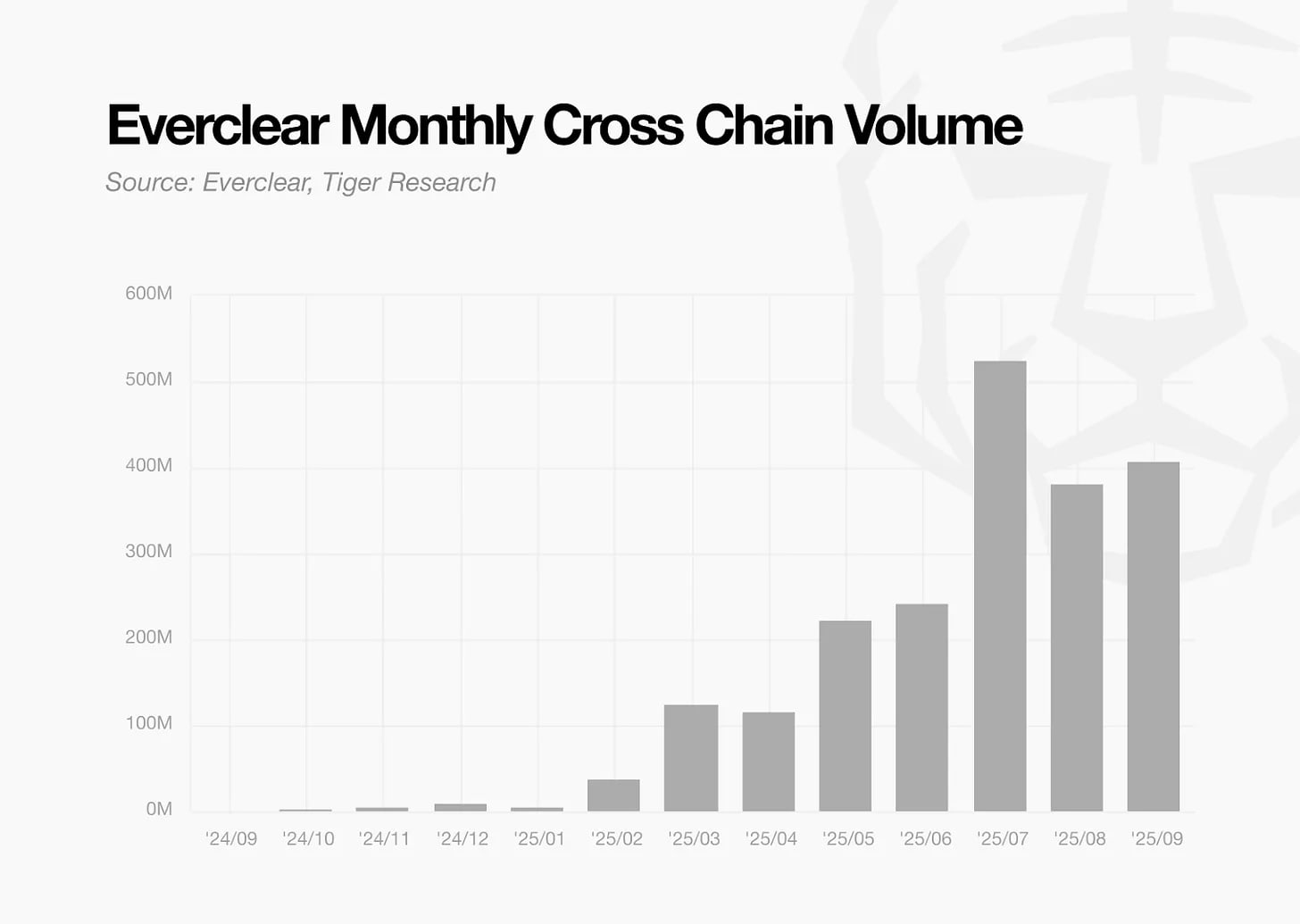 Current growth trends reinforce this. Everclear's monthly transaction volume has increased 100-fold compared to early 2025, reaching a total of $2 billion. Currently, Everclear adoption is primarily among bridges and DeFi protocols. Everclear has also partnered with several market makers and begun partnering with CEXs ( centralized exchanges ) to help them rebalance funds across chains .
