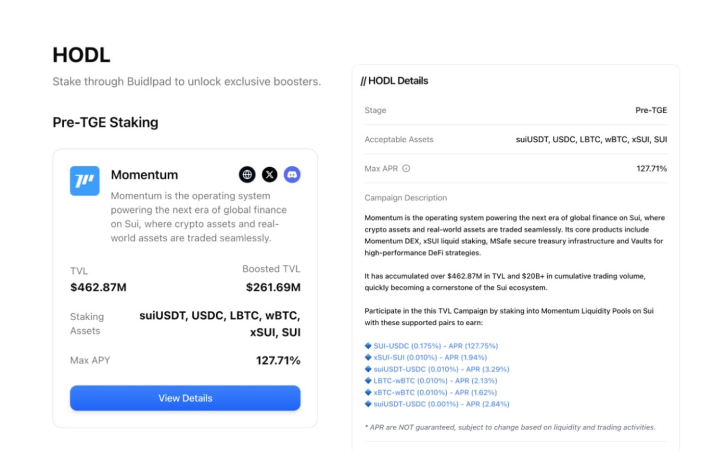 This approach has clear advantages and disadvantages. Anyone with capital can participate, creating low entry barriers. Projects can secure necessary liquidity in early stages. Projects like Momentum currently conducting sales on Buidlpad have secured substantial TVL (Total Value Locked). However, capital size becomes a prerequisite for participation. This limits opportunities for participants who could contribute through influence or technical skills like on Legion.
