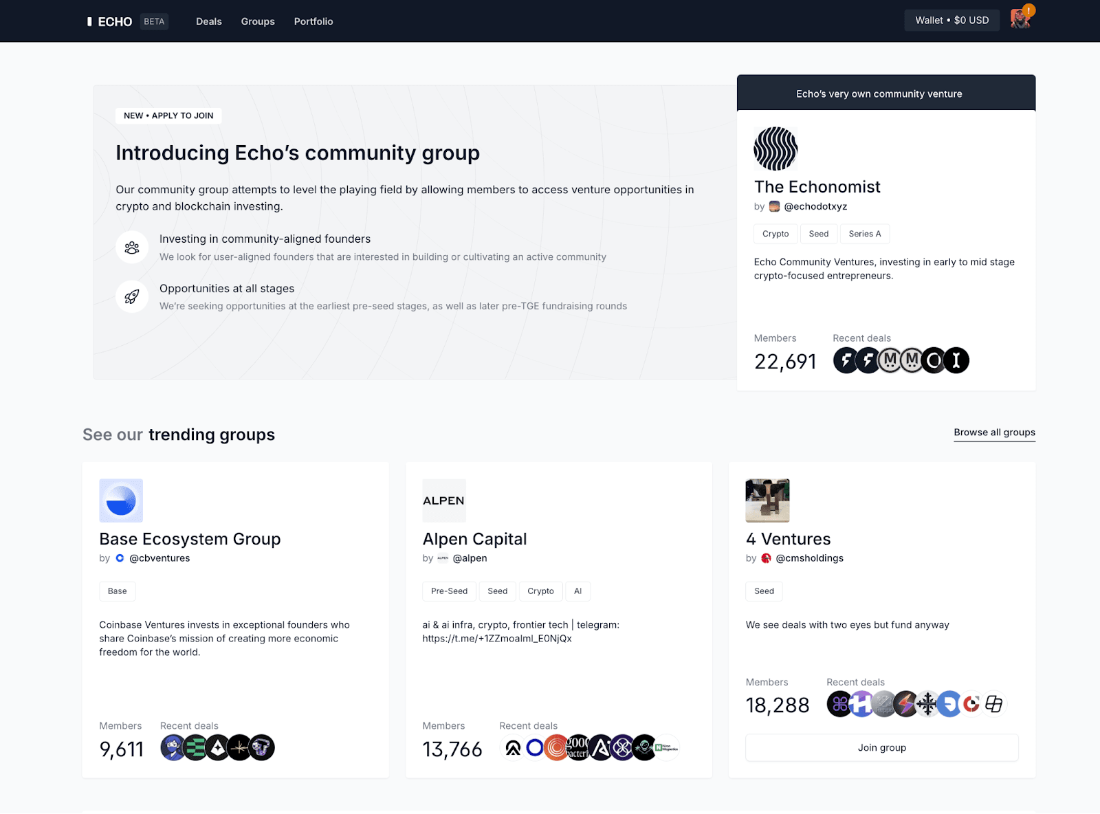 Sonar is a public launchpad developed by the syndicate investment platform Echo . Echo operates on an invitation-only basis and is exclusively for professional investors, strictly screening participants based on investment experience and capabilities, in addition to KYC. This closed structure poses a high barrier to entry for general investors. Sonar was created to address this, pursuing a more open token sale model.