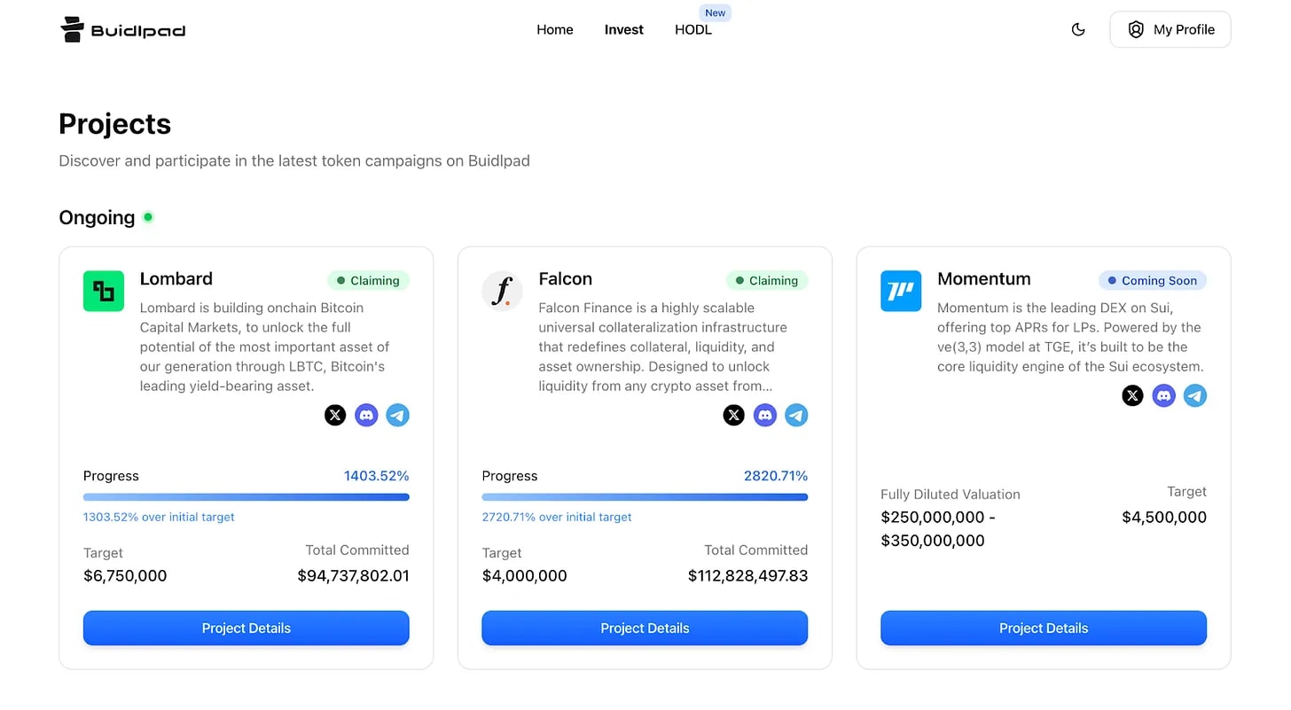 Buidlpad , a startup platform focused on the Sui ecosystem, adopts a distinct operational strategy from Legion. While both platforms allow anyone who completes KYC verification to participate, there are fundamental differences in participant screening criteria. Legion utilizes a value scoring system, while Buidlpad's screening is based on the liquidity contribution provided by participants to the project. Participants are required to stake funds directly in the Hodl section of their preferred project pool. Tiers are determined by the amount staked. Higher tiers offer more favorable token purchase prices.