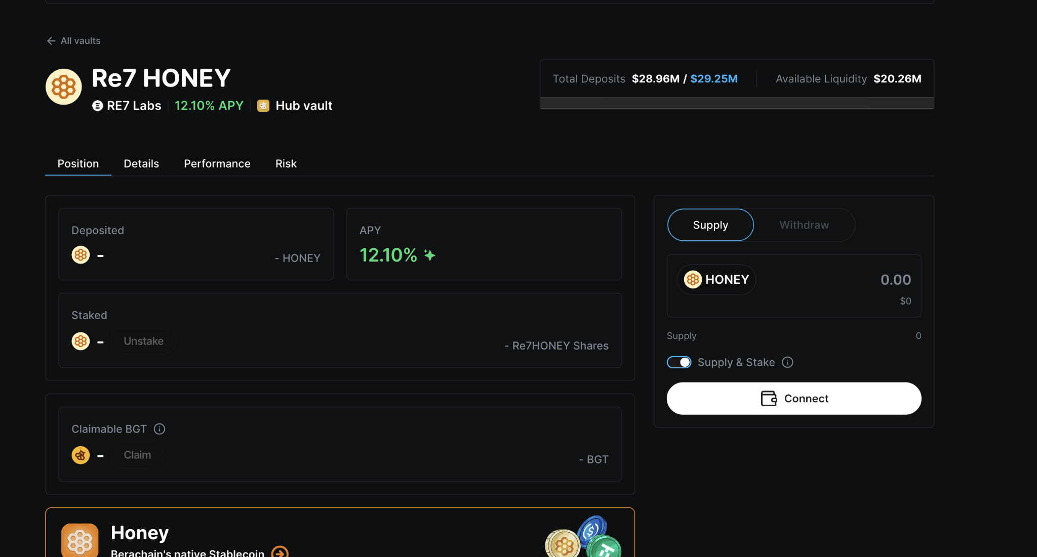 Currently, the total supply of BEND HONEY is approximately $28.94 million, and borrowers can earn a dual return of Yield + BGT, with an annualized return of over 12%. This means lenders can obtain native PoL-driven returns through a stable underlying treasury without taking on excessive strategic complexity.