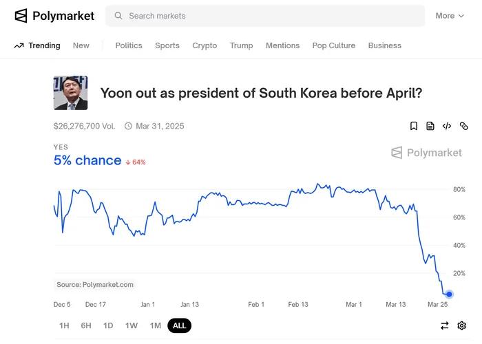 During the impeachment crisis surrounding former President Yoon Seok-yeol in early 2025, a large number of contracts related to South Korean political events appeared on Polymarket, sparking widespread public and media attention to prediction markets. South Korean media outlets consistently characterized Polymarket as an illegal private Toto platform and emphasized that under current South Korean law, citizens who participate in prediction market betting could be subject to punishment for gambling.