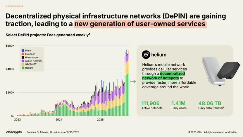 The most notable example is the Helium Network, a grassroots wireless network that now provides 5G cellular coverage to 1.4 million daily active users via over 111,000 user-operated hotspots.