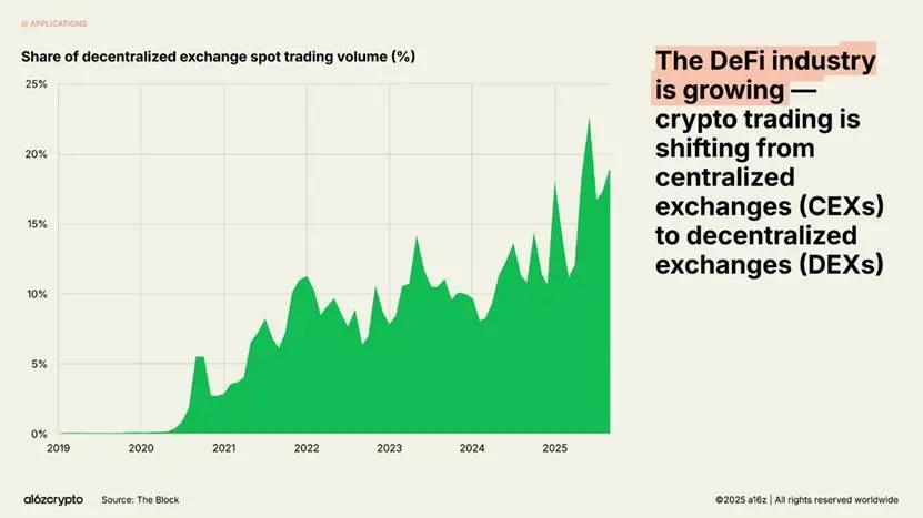 The on-chain economy—once a niche playground for early adopters—has evolved into a multi-sector market with tens of millions of monthly participants. Nearly one-fifth of all spot trading volume now occurs on decentralized exchanges.
