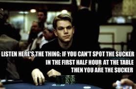 This is something else I learned as a professional poker player: it doesn’t matter if you’re the tenth best poker player on planet earth, if you’re sitting at a table with the nine best players, you’re the sucker, and you’re gonna lose money.