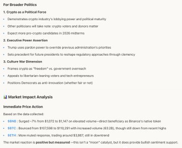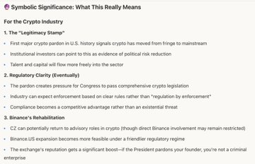 Trump pardoned @cz_binance just now.🥳 Does this signify official recognition of legitimacy for crypto industry and the end of government’s war on cryptocurrency? Why did Trump choose this timing to pardon CZ? 🔍 View Minara's outlook of that event 👇 minara.ai/share/chat/68fa4f31a...…