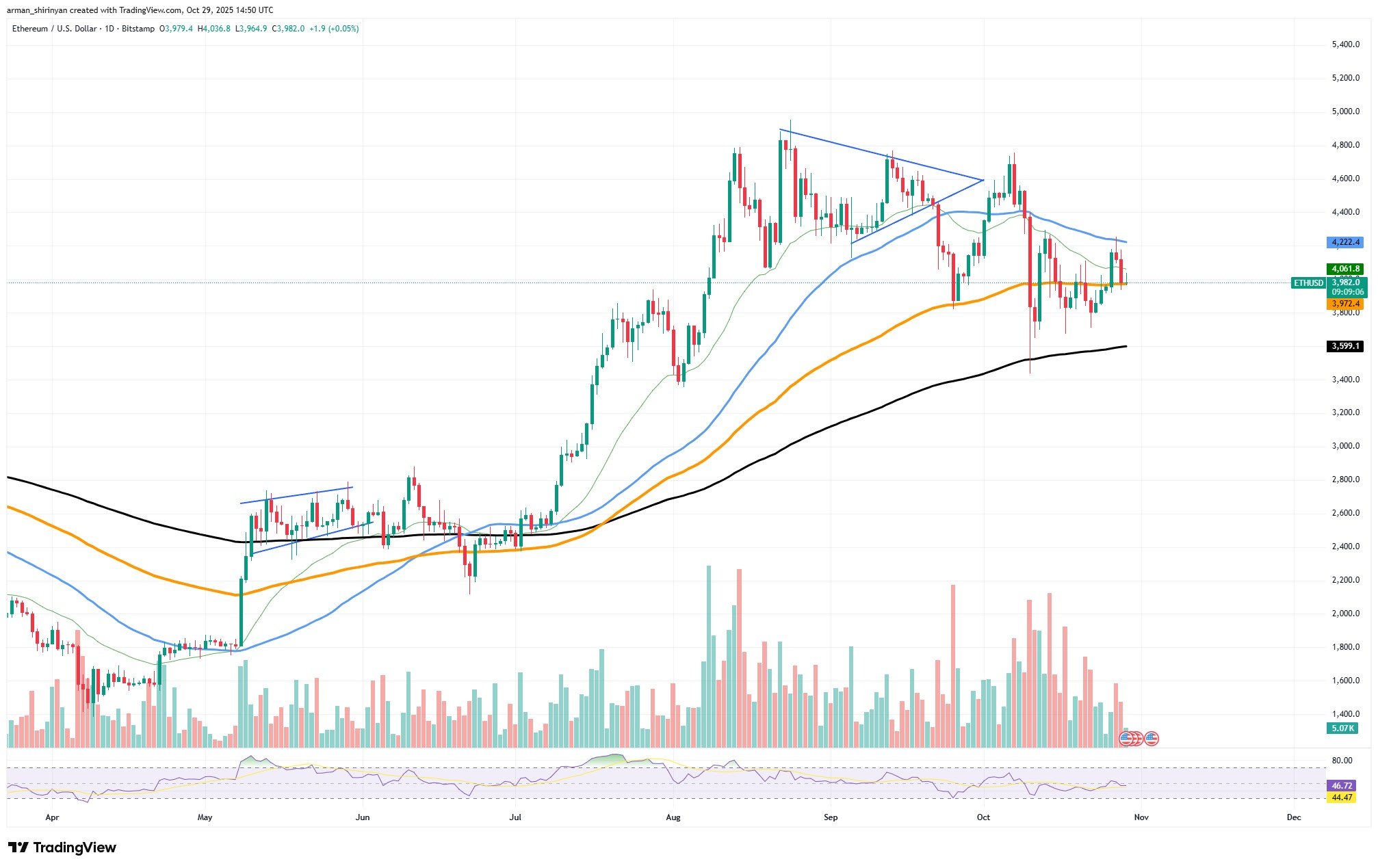 The next downward targets for Ethereum are $3,800 and $3,600, if it is unable to maintain a hold above $3,950-$4,000. A clear break below the latter might intensify selling pressure and possibly validate a more extensive downward trend that lasts into November.