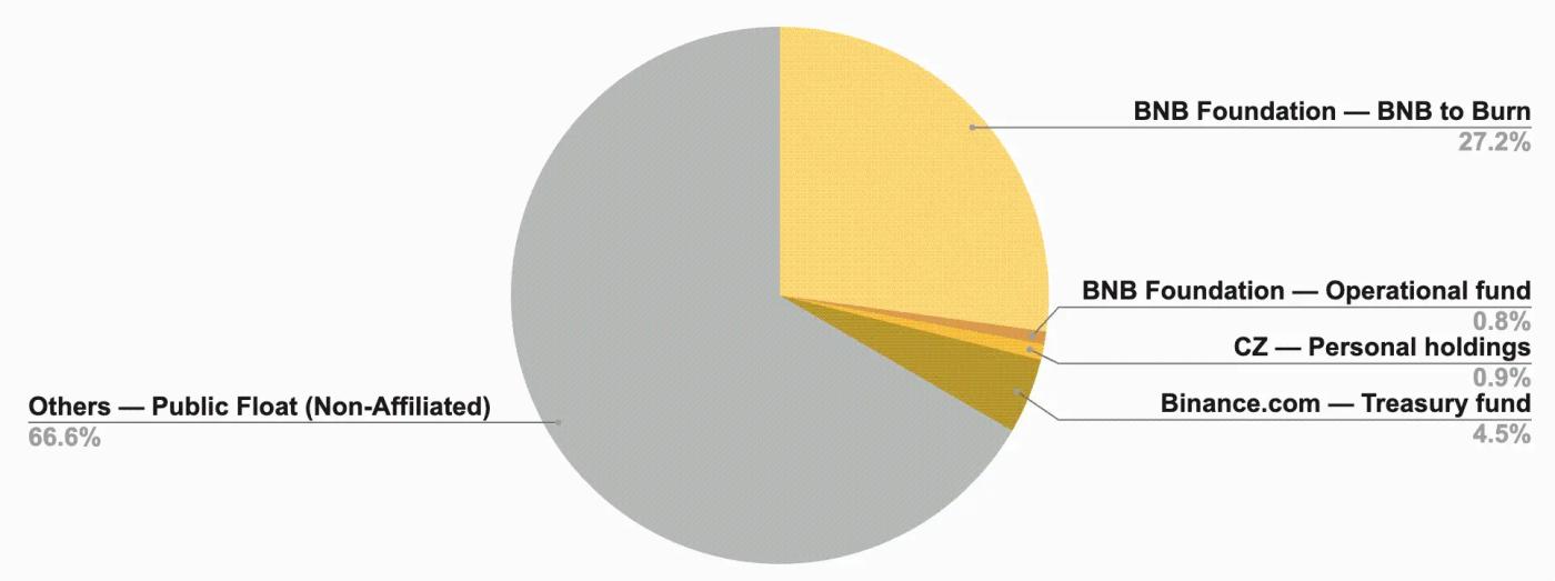 - Approximately 27% — BNB Foundation's burn reserve (for programmatic burning; not for sale).