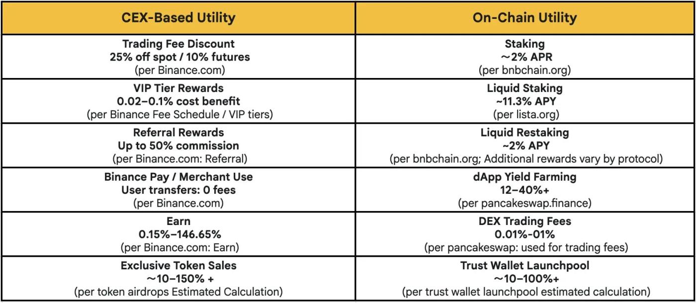 Beyond BNB Chain itself, BNB is also being adopted by other platforms as a utility token. For example, on the Binance exchange, BNB holders can enjoy trading fee discounts and participate in token issuance projects such as Launchpool and Megadrop. This combination of off-chain and on-chain use cases reflects BNB's growing role as a multi-scenario Web3 token spanning both decentralized and centralized ecosystems.