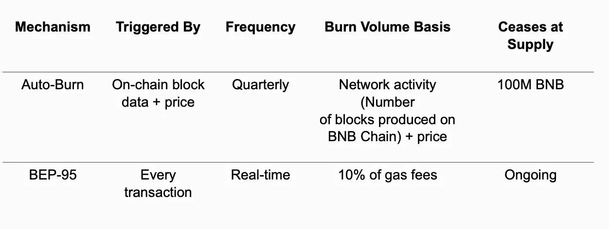 BNB is programmatically self-balancing. It operates within a programmatically set cap of 100 million tokens and is managed by two complementary mechanisms—Auto-Burn and BEP-95—which reduce the circulating supply quarterly and in real-time based on activity and value flow.