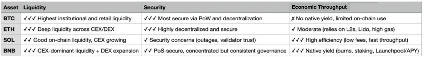 In the crypto world, everything begins and ends with the nature of assets. Compared to traditional assets, crypto assets are programmable, composable, and integrated with infrastructure, which makes their evaluation multidimensional and uniquely linked to three core asset dimensions: economic throughput, security, and liquidity—forming what we call the Asset Blockchain Trilemma, a native extension of the macroeconomic "policy Blockchain Trilemma" into the crypto space.