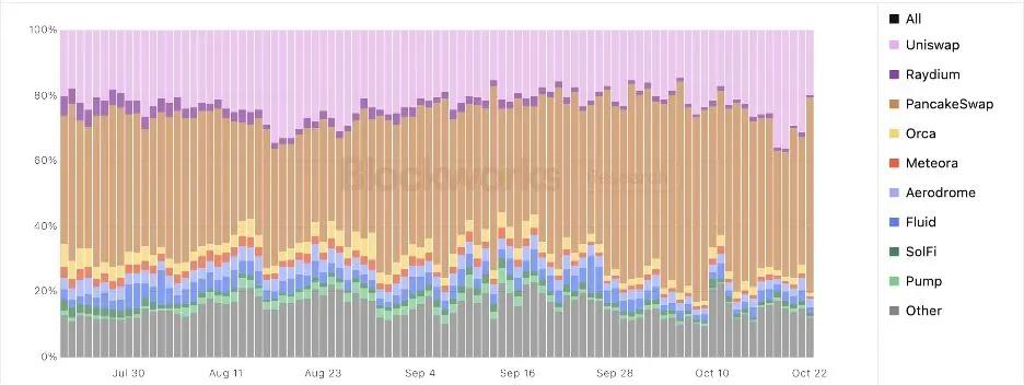 Image 2: According to Blockworks Research data, BNB Chain has the largest spot market share among all DEXs.