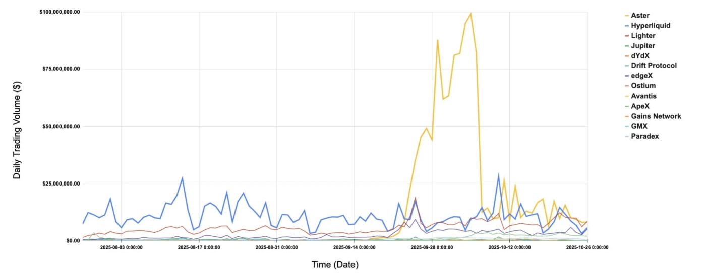 Image 3: Aster's on-chain perpetual contracts significantly outperform Hyperliquid, driving a breakthrough for BNB Chain.