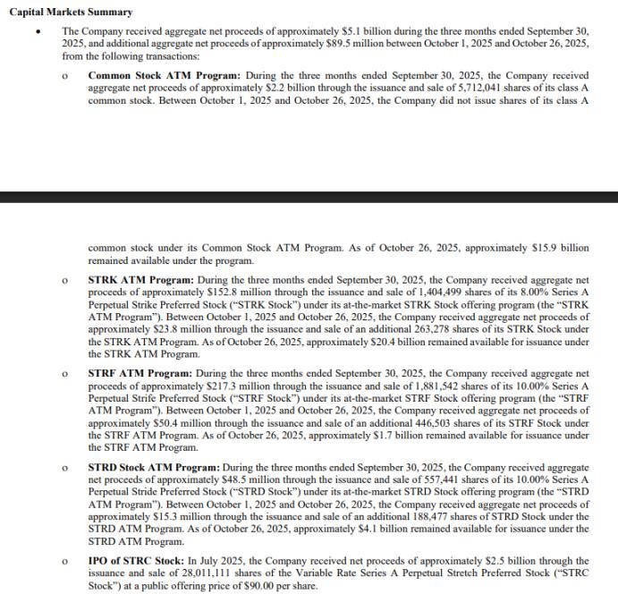 In fact, the financial report for the third quarter of 2025 showed that as of October 26, 2025, MSTR had a remaining issuance quota of approximately US$42.1 billion through multiple ATM programs. In other words, MSTR could buy up to US$42.1 billion worth of Bitcoin.