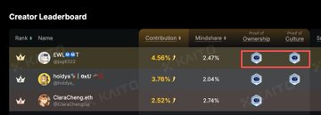 关于项目的详细介绍可以看我之前的推文,openmind 榜单有趣的一点是除了mindshare还有contribution指标,以及proof of ownership和proof of culture两个badge