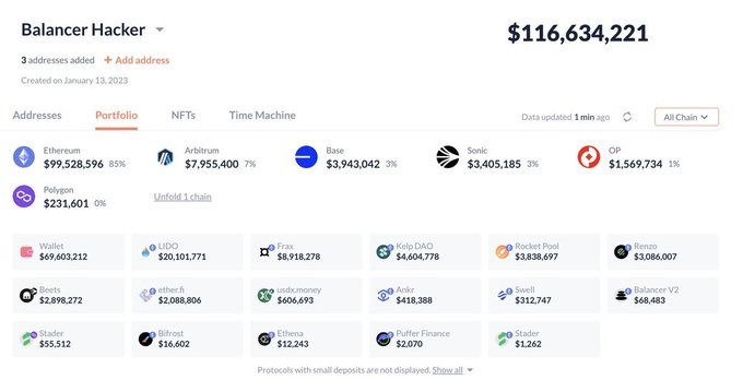 drained ≈$70.6M in ETH derivatives (WETH, osETH, wstETH) directly from Balancer’s main Vault.