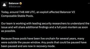Today, around 7:48 AM UTC, an exploit affected Balancer V2 Composable Stable Pools.