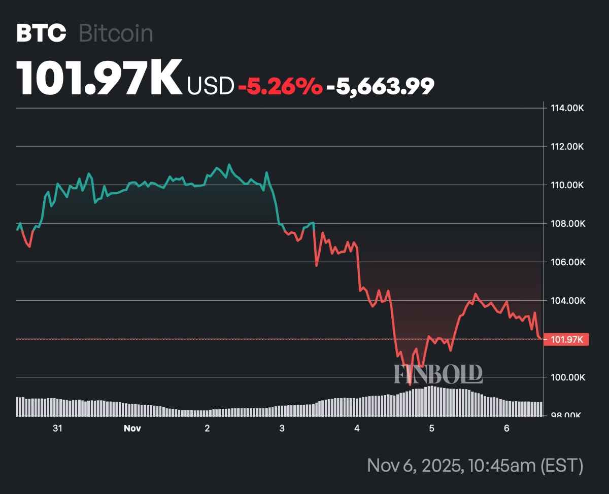 Still down around 5% this week and trading at $101,970 at the time of writing, the “digital gold” briefly slipped below $100,000 on November 5 for the first time since June, following the broader crypto market, which recorded nearly $1 trillion in monthly losses on the same day.
