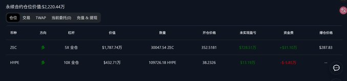 coinank.com/zh/hyperliquid/0x5...… This address suffered a loss of over 8 million on October 27th. However, through a heavy All In on ZEC at a price of 352, it has almost recovered all of its losses and even made a profit of 300,000 in fees.
