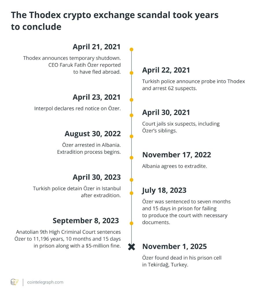 Özer, the 27-year-old former CEO of Thodex exchange, was found dead on November 1 while serving a sentence of more than 11,000 years in prison for orchestrating a $2 billion Exit Scam that caused losses to nearly 400,000 investors.