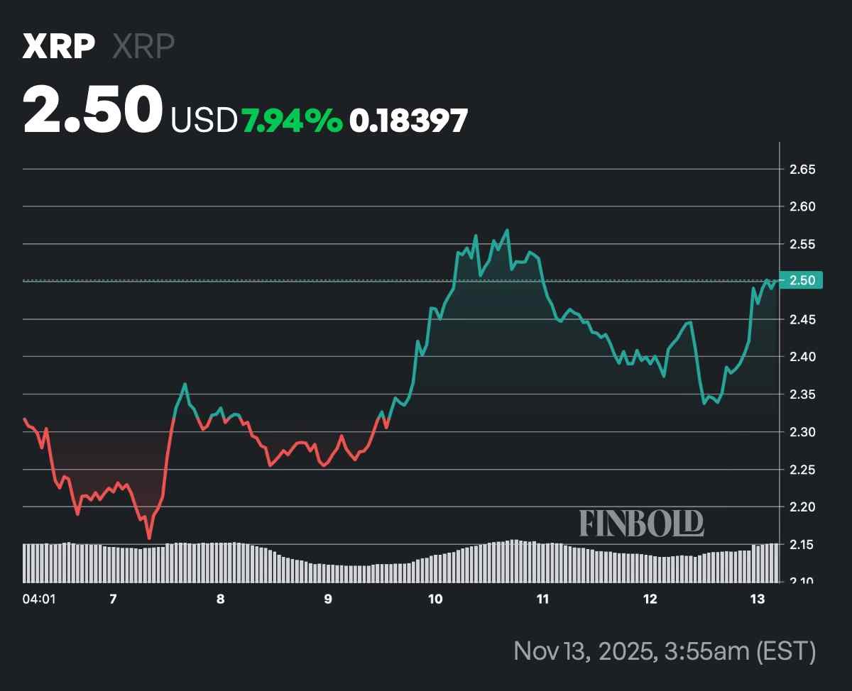 While XRP’s price slowly dropped over the subsequent couple of days, it is once again surging at the time of writing on Thursday, November 13, up nearly 4% on the daily chart and almost 8% in the green on the week.