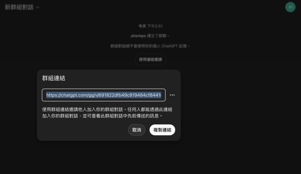 The system will then provide you with a sharing link. Send it to the partners you want to chat with, and they can join after accepting. You can leave or view the member list at any time during this process.