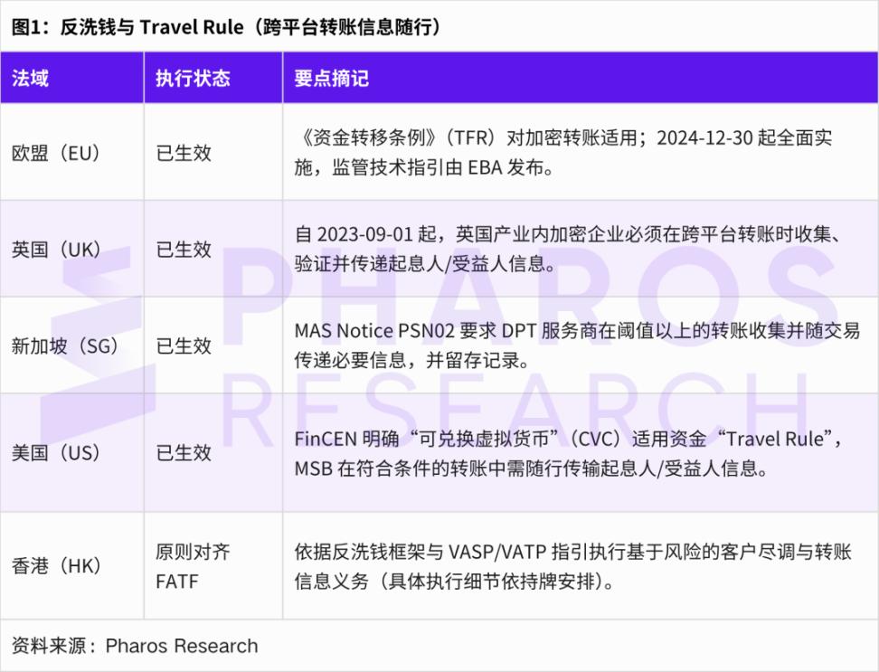 Since 2018, the requirement to fully extend anti-money laundering (AML) and counter-terrorist financing (CFT) to the crypto asset sector has become a global regulatory consensus. At the international level, the Financial Action Task Force (FATF) revised Recommendation 15 in 2019, bringing virtual asset service providers (VASPs) under the same stringent AML/CFT obligations as traditional financial institutions[1]. The FATF also introduced the "Travel Rule," requiring VASPs to collect and transmit the identity information of the initiator and recipient of large crypto transactions to the other party[13]. This global standard has set a benchmark for domestic legislation in various countries. By 2025, most major jurisdictions have included VASPs in their national anti-money laundering regulatory systems and established systems such as customer due diligence (KYC) and suspicious transaction reporting. According to the latest FATF report, 99 jurisdictions worldwide have promulgated or promoted relevant regulations to implement the Travel Rule and enhance the transparency of cross-border virtual asset transactions[14].