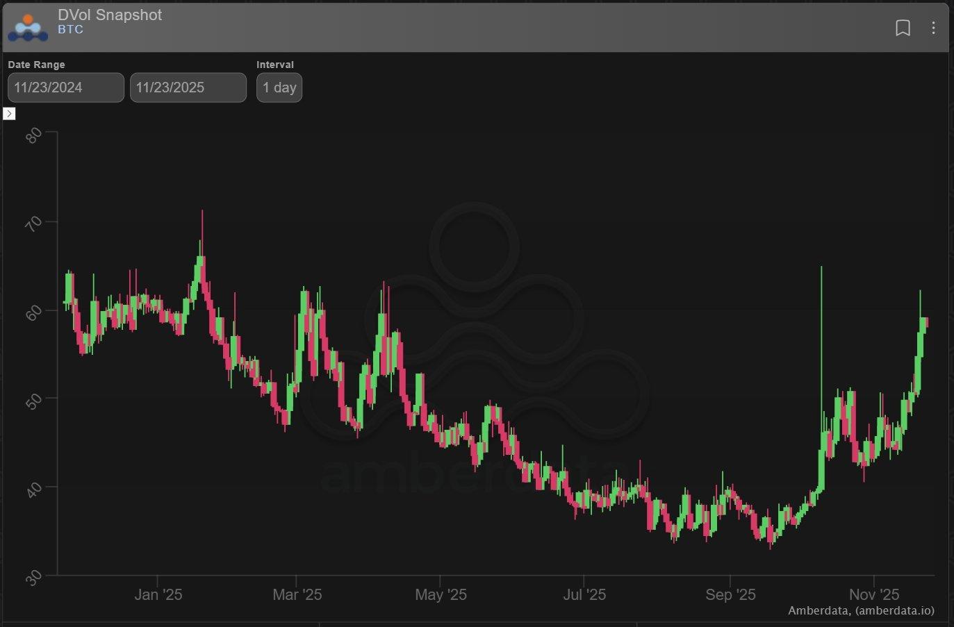 See the blip on 10/10 to the right, but also compare today’s vol with early 2025 and note order.