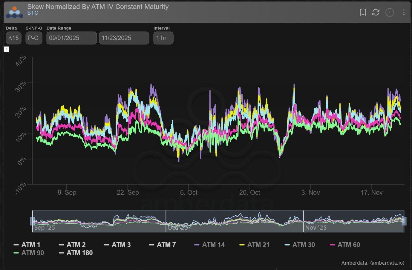 Put Skew is consequently elevated with Put buying and (at best) pressure on Calls, often funding the downside.
