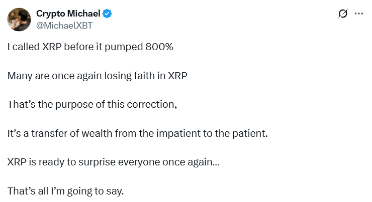 Now, XRP has again entered a consolidation, leading to bearish sentiments among investors, similar to the trend observed last year. Speaking on this, Michael confirmed that several market participants have again begun losing faith in XRP. However, he claimed that this loss of confidence was the primary aim of the ongoing downtrend.