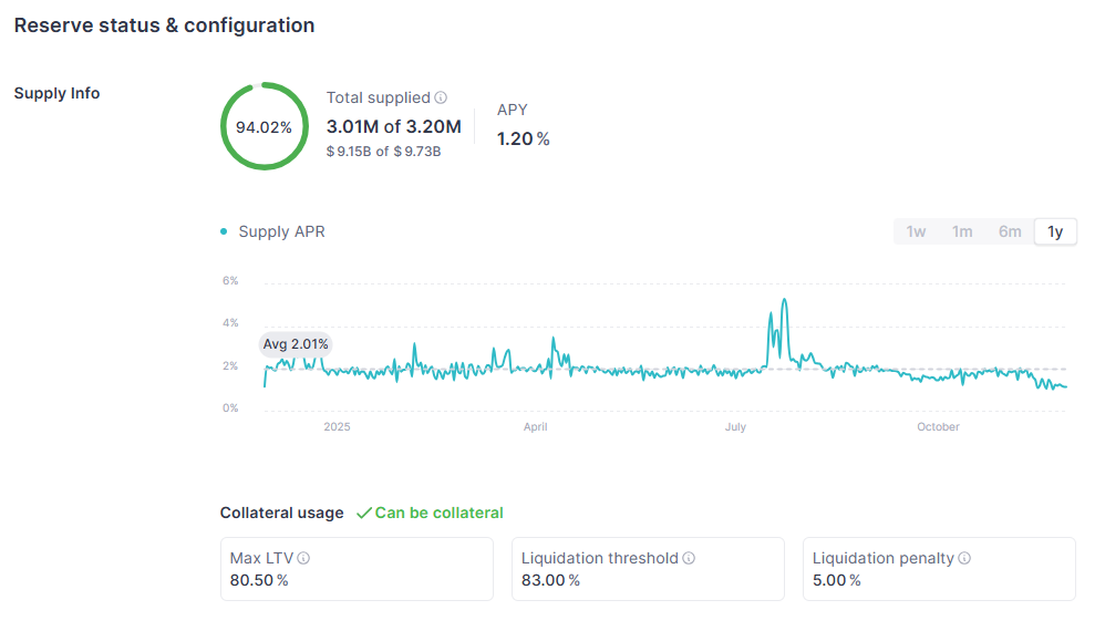 ETH deposits into Aave accelerated throughout 2025, as confidence in DeFi increased. Aave was a way to tap the value of ETH, both as direct collateral or through wrapped tokens. According to data from Sentora, Aave now carries over 3M ETH, an all-time record.