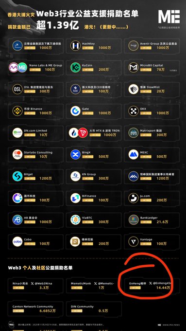 Three firsts: No. 1 individual donor on Web3, the only KOL to donate the most to Hong Kong 🇭🇰, and the first person under 25 to donate the most—EnHeng! Learn from outstanding people, gravitate towards kind-hearted people. @EnHeng456 @binancezh @cz_binance #BNB