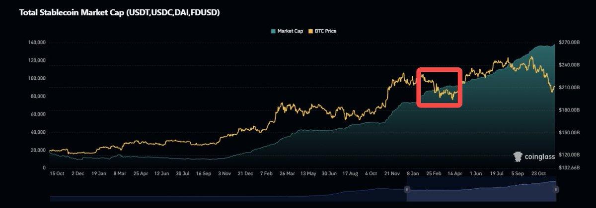 Even though price corrected, stablecoin supply kept rising.