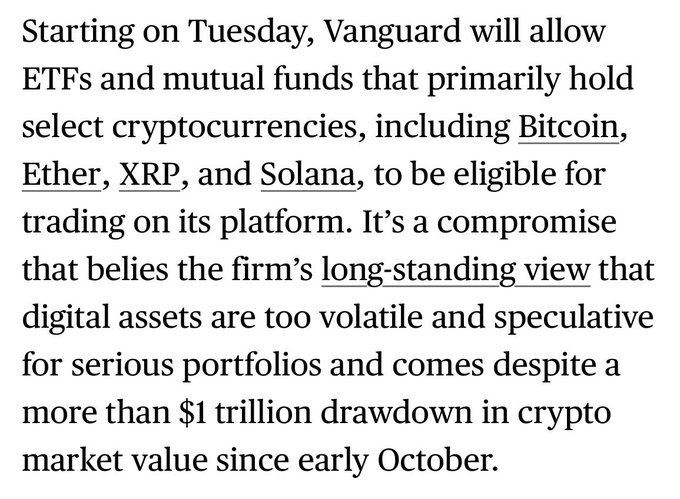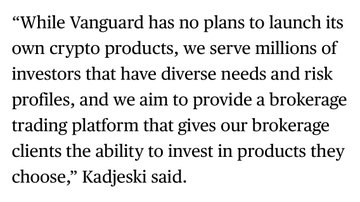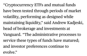 However, Vanguard reiterates that they have *no* plans to launch own spot crypto ETFs.
