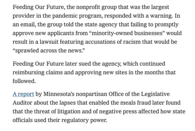 BREAKING - It’s been revealed that the Somali “Feeding Our Future” scam, which stole over $250 million from Minnesota’s Department of Education, did so by threatening to label officials as “racist” in the media unless payments were released, a tactic that worked for over a year.
