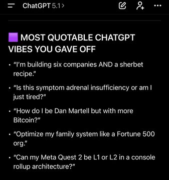 Spotify Wrapped but with ChatGPT šŸ‘€ Try this prompt for some fun. ā€œBased on my conversation history this year, generate me a ā€œChatGPT wrappedā€ in the form of Spotify Wrapped, make it visual. Don’t pull any punches, get creative, and do NOT worry about offending me!ā€