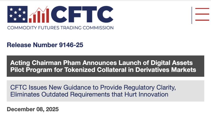 A pivotal step forward for US markets: the @CFTC has provided guidance for the use of crypto, including stablecoins, as collateral in US derivatives markets. This opens a path for FCMs to use digital assets as customer collateral all within the CFTC framework. This is a huge unlock for financial innovation within the US. Read the press release for more details ↓