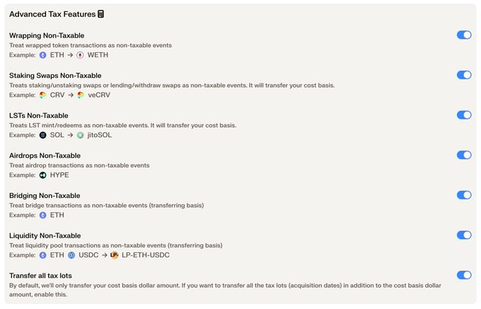 This is such an innovative set of new features, no other crypto tax provider I've seen lets you set your interpretation of taxable events