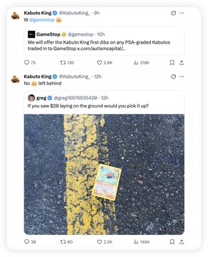 宝可梦卡牌 $Kabuto 一天5倍,老外也是会玩,收集卡牌都能搞出通缩拉盘,浏览量很高,GME也转发了