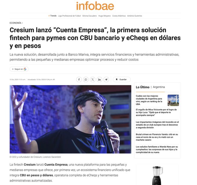One of @ergodicgroup’s companies is scaling rapidly in Argentina. We're onboarding hundreds of companies every month. Cresium, our B2B fintech platform, is helping hundreds of companies each month operate, move capital, and grow with modern financial infrastructure. We’re