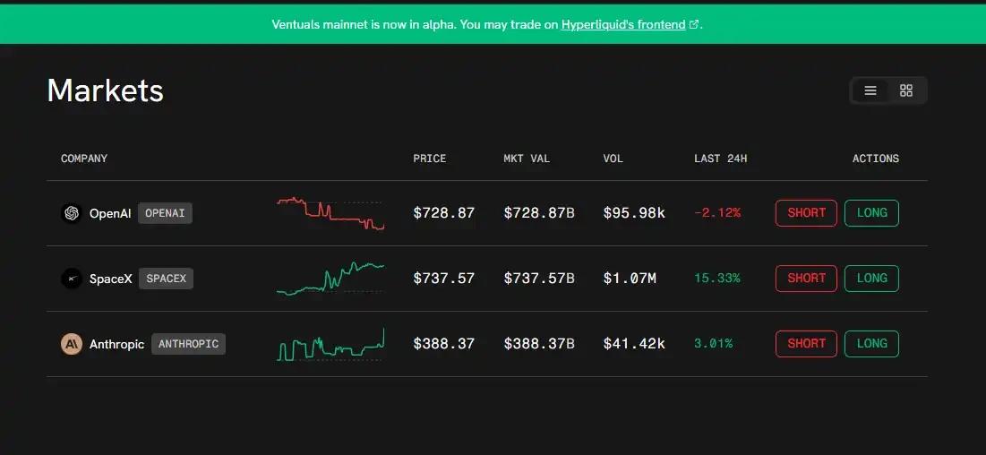 Because they are not linked to actual equity, Ventures are essentially platforms for betting on company valuations. The advantage of this model is that Ventures can quickly list a large number of pre-IPO companies and respond to market trends, while the lack of actual underlying assets also helps to avoid traditional regulations to some extent.