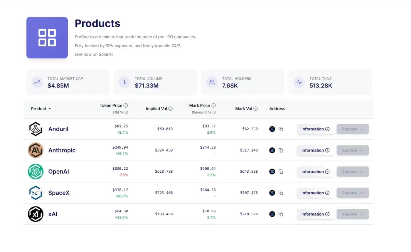 PreStocks is built on the Solana network. Unlike Ventures, PreStocks truly tokenizes the pre-IPO equity held by entities that have directly or indirectly invested in the target company. The team mentions on its website that it will regularly publish third-party verification reports to ensure that the token supply corresponds to the actual equity held, and will also publish them when there is an active request to provide audit fees.
