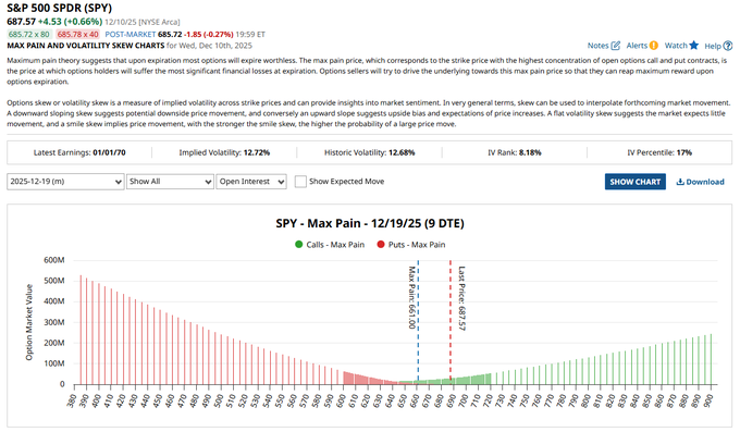 S&P 500 $SPY Max Pain Price for the last monthly options expiration of the year is currently $661 👀 That would represent a drop of almost 4% between now and December 19 🤯📉