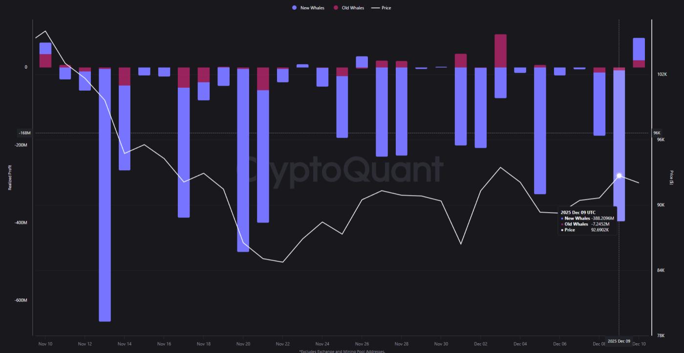 Actual profits of Bitcoin whales as of November 2025. Source: CryptoQuantYesterday, new whales closed out $386 million in losses in just one day. Their data column on the chart showed a massive drop. In addition, several other large loss columns appeared around the recent Dip .