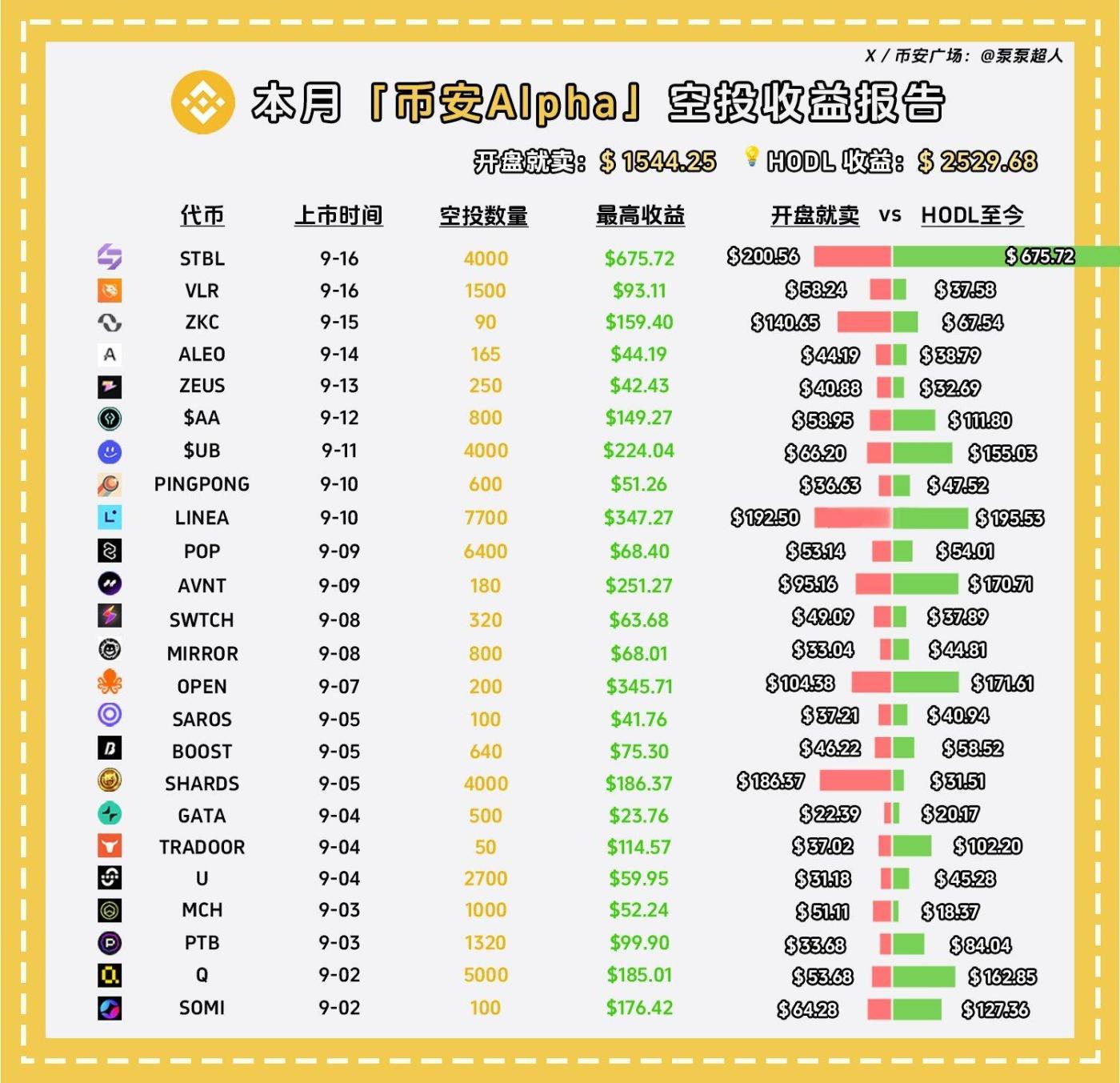 Binance Alpha Earnings Report (Statistics as of September 17)