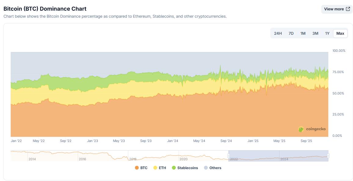 The profitability of airdrops essentially depends on the subsequent performance of the airdropped tokens, and the amplification of airdrop value often relies on the "altcoin season"—the golden window of opportunity when Altcoin collectively rotate and experience explosive growth. However, throughout 2025, the crypto market was trapped in a prolonged BTC-dominated landscape, with Altcoin generally sluggish. According to on-chain data, BTC's market capitalization share continued to rise, reaching a peak of 63% this year. BTC's dominance means that liquidity does not spill over, altcoins do not rotate , and new projects find it more difficult to gain momentum—without a price amplifier, the value of airdrops cannot rise, and the profitability of airdrops is destined to weaken.