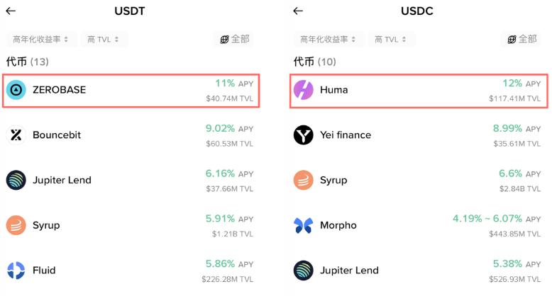Finally, for individuals, I generally participate in DeFi projects with annualized returns exceeding 10% among the USDT and USDC investment products in my Binance Web3 wallet. Instead of dabbling in various on-chain products, unsure of their authenticity, it's much safer and more convenient to choose DeFi products directly within the Binance wallet.